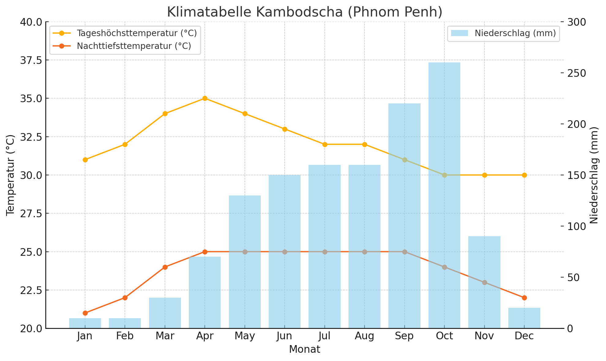• Währung: Kambodschanischer Riel (KHR); US-Dollar ist weit verbreitet