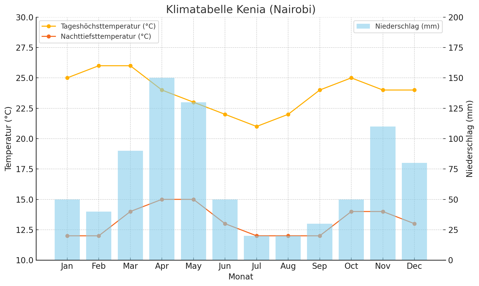 Die Begrüßung mit „Jambo“ ist in Kenia üblich, und ein freundliches Lächeln wird geschätzt. Respektiere lokale Bräuche und fotografiere Menschen nur mit deren Zustimmung.