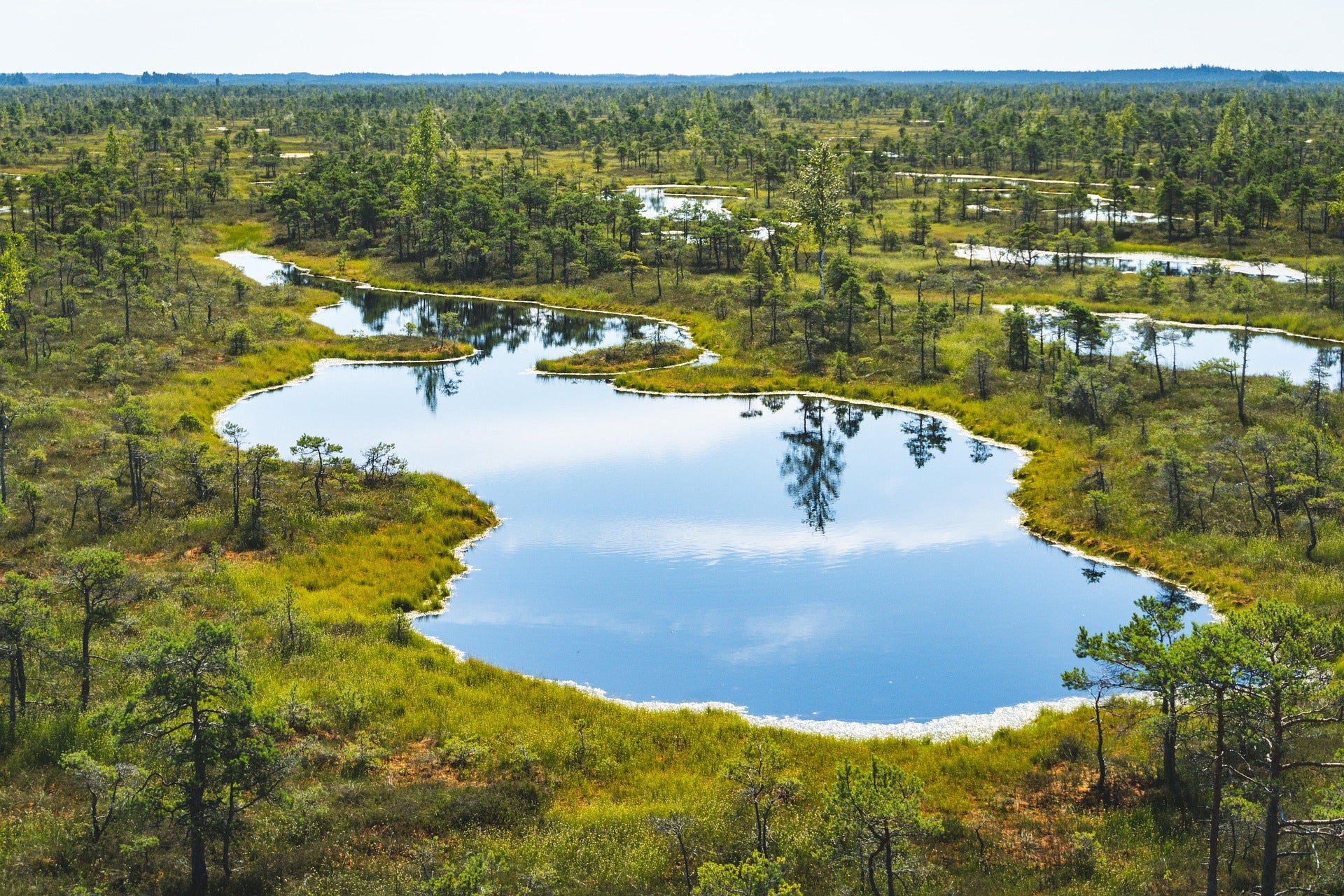• Erlebe einen magischen Sonnenaufgang auf dem Großen Ķemeri-Moorpfad, der dich auf Holzstegen sicher durch die einzigartige Sumpflandschaft führt.