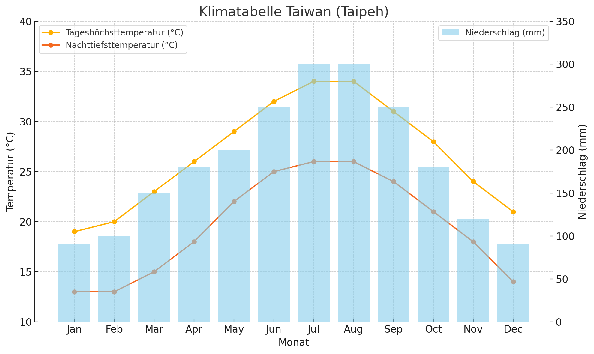 Taiwan kombiniert moderne Technologie mit traditionellen Werten. Höflichkeit ist sehr wichtig, und das Überreichen von Visitenkarten wird oft erwartet. Religiöse Zeremonien und Tempelbesuche sind ein zentraler Bestandteil des Lebens.