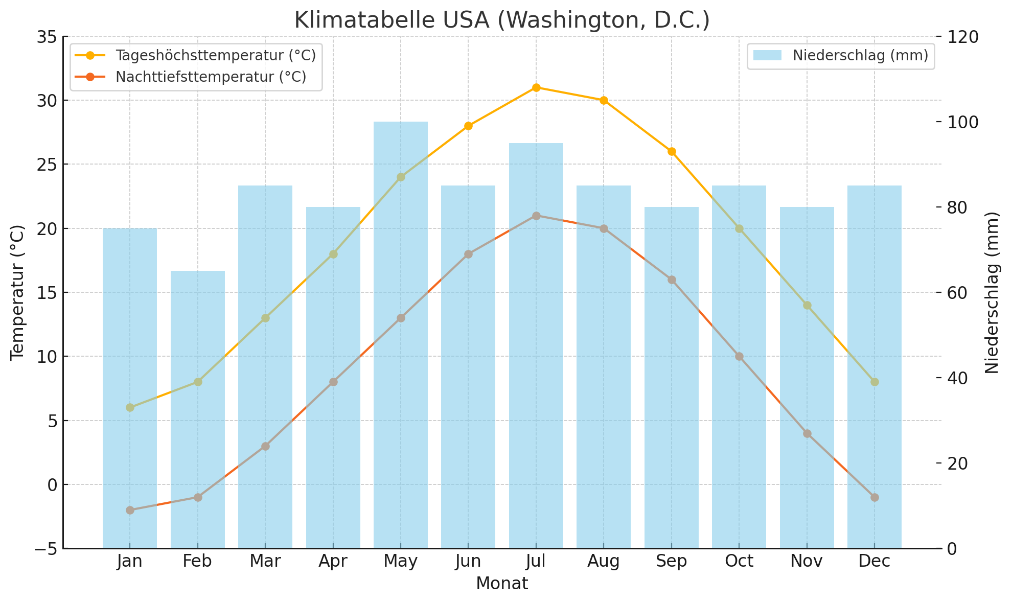Die USA sind ein Schmelztiegel der Kulturen, geprägt von Vielfalt und Individualismus. Trinkgeld ist in Restaurants und Taxis üblich (ca. 15–20 %), und Smalltalk gehört zum Alltag.
