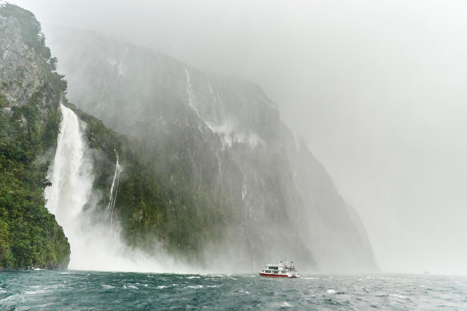 Eine Bootsfahrt durch den Milford Sound (oder den ruhigeren Doubtful Sound) ist ein absolutes Muss. Gleite vorbei an senkrechten Felswänden, von denen gewaltige Wasserfälle stürzen, und halte Ausschau nach Robben und Delfinen. Ein unvergessliches Erlebnis bei jedem Wetter!