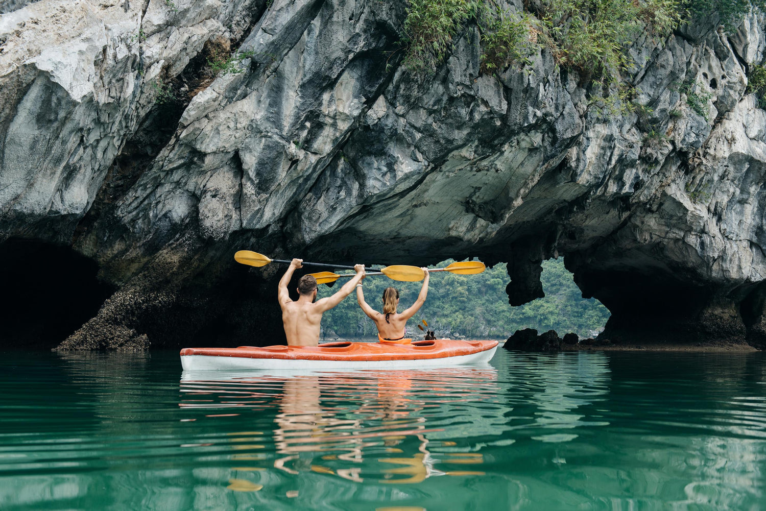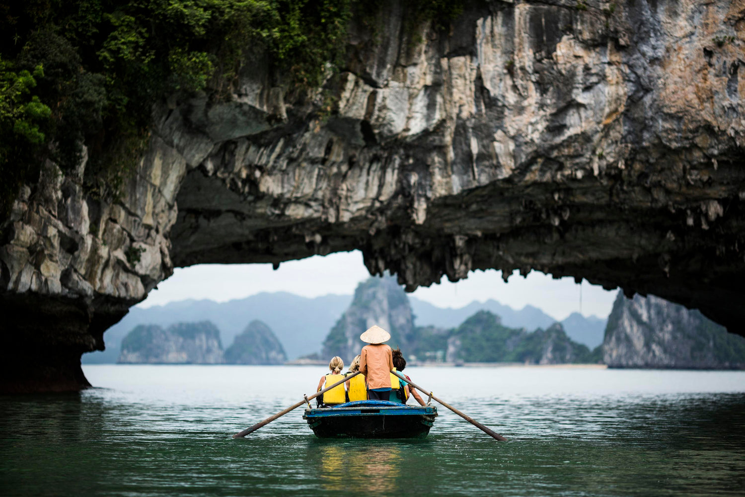 Die Lan Ha Bucht ist die wunderschöne und deutlich ruhigere Alternative zur überlaufenen Halong-Bucht. Wähle eine Tour mit einem kleineren Schiff, übernachte an Bord und erkunde die Karstfelsen und schwimmenden Dörfer aktiv mit dem Kajak.
