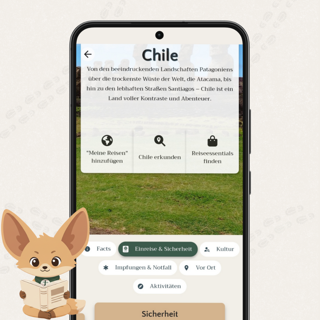 Der Download und der Zugang zu den Länderinfos, Blog-Artikel und zum Shop sind komplett kostenlos! Du kannst sofort stöbern und dich inspirieren lassen. Für den vollen Funktionsumfang des "Digitalen Rucksacks" (Packlisten, Dokumentensafe, Planung) brauchst du unser flexibles In-App-Abo. Dein Ticket für stressfreies Reisen!