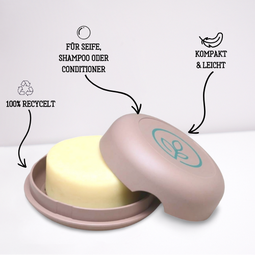 Die Reise- und Duschbox ist die perfekte Lösung für alle, die ihre festen Pflegeprodukte sicher und hygienisch aufbewahren möchten – egal ob Shampoo-, Dusch- oder Conditioner-Bars. Hergestellt aus 100 % recyceltem Kunststoff, sorgt die Box dafür, dass deine Pflegeprodukte trocken bleiben, egal ob in der Dusche oder im Reisegepäck. Kleine Löcher an der Unterseite lassen Wasser abfließen und verhindern Feuchtigkeitsrückstände. Die Box ist leicht, robust und vielseitig – ideal für nachhaltige Abenteuer.