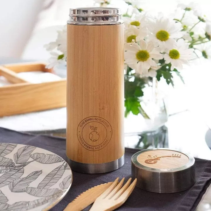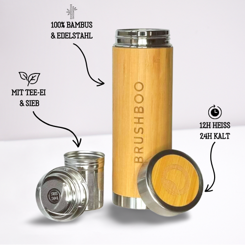 Die isolierte Reise-Thermoflasche hält deine Getränke bis zu 12 Stunden warm und 24 Stunden kalt. Sie ist robust, doppelwandig, aus nachhaltigem Bambus und Edelstahl – perfekt für unterwegs, auf Reisen, beim Wandern oder beim Städtetrip.