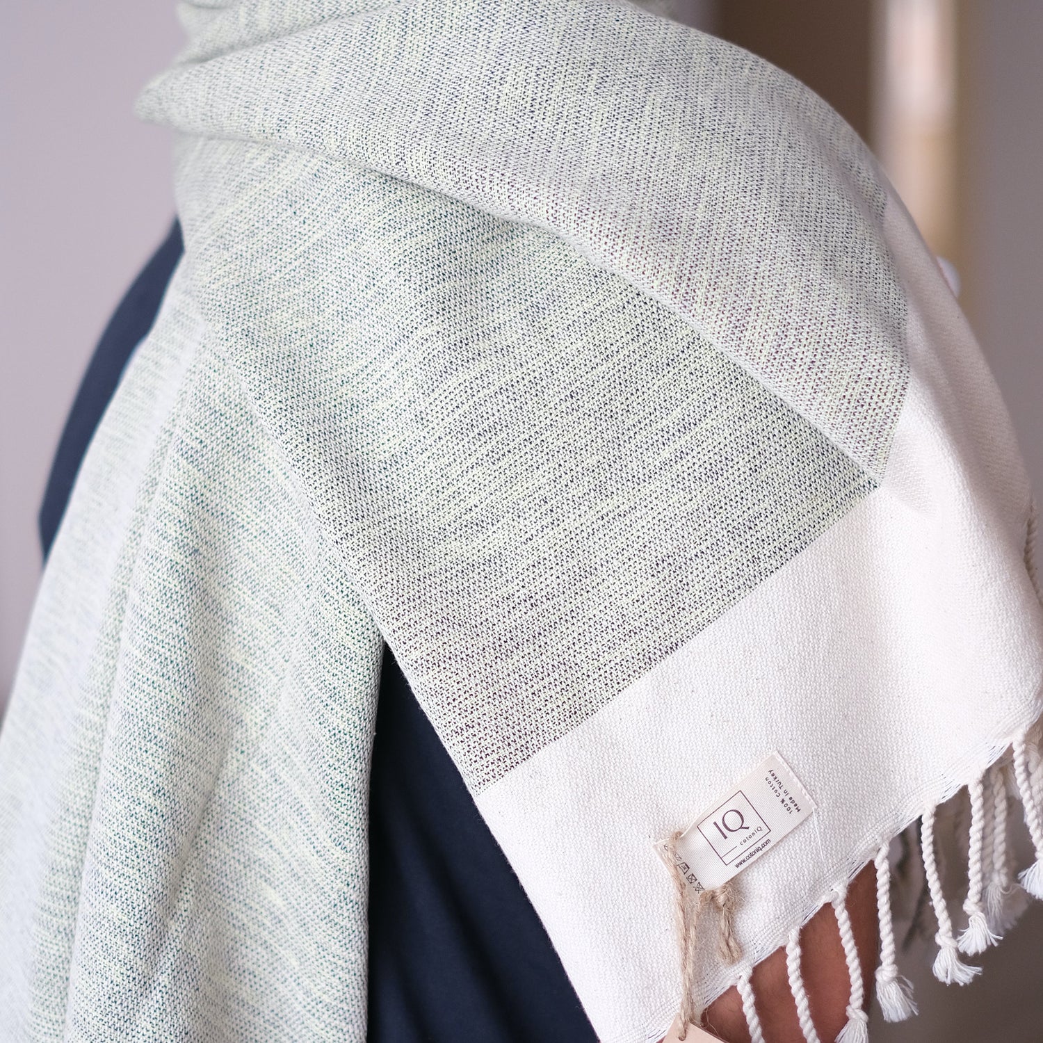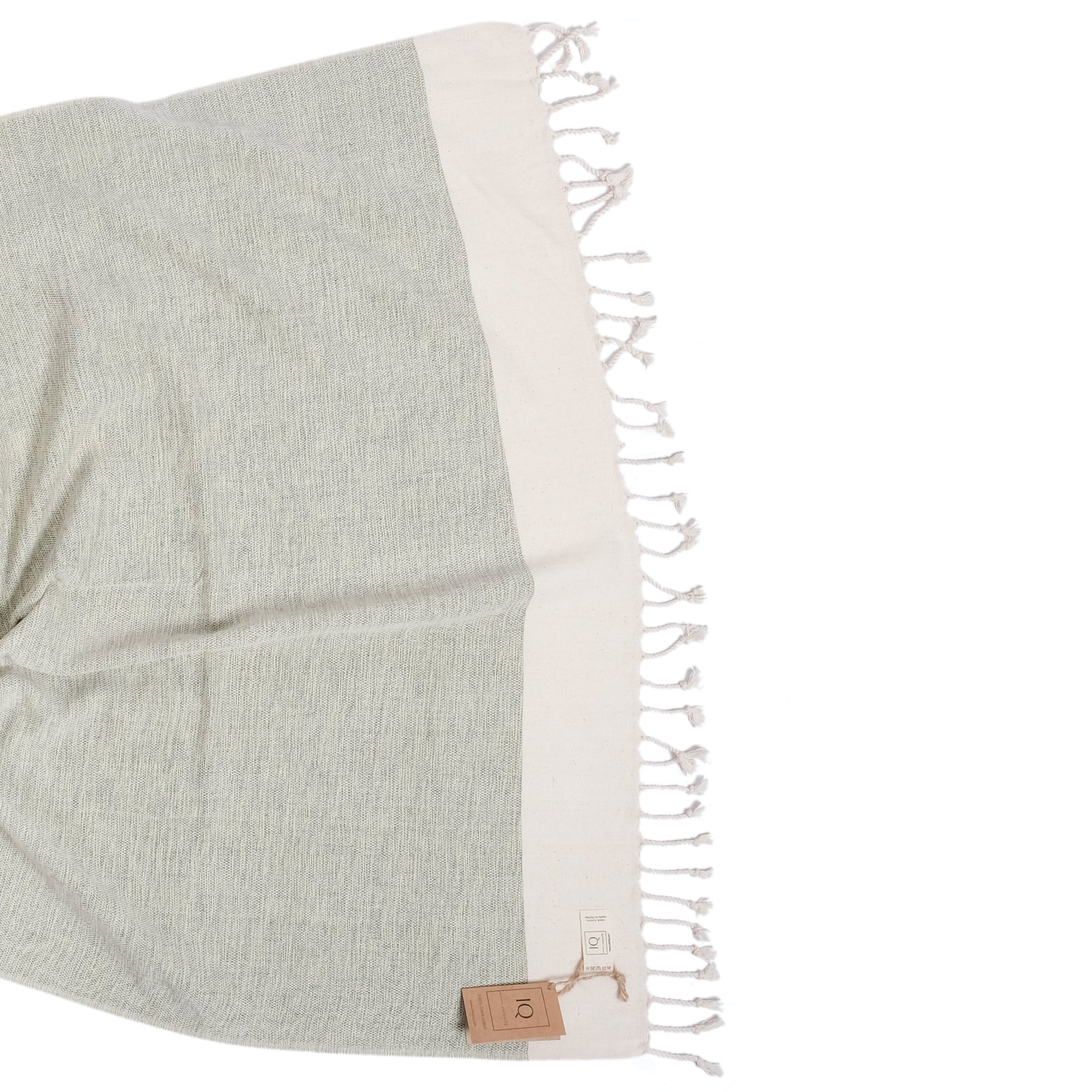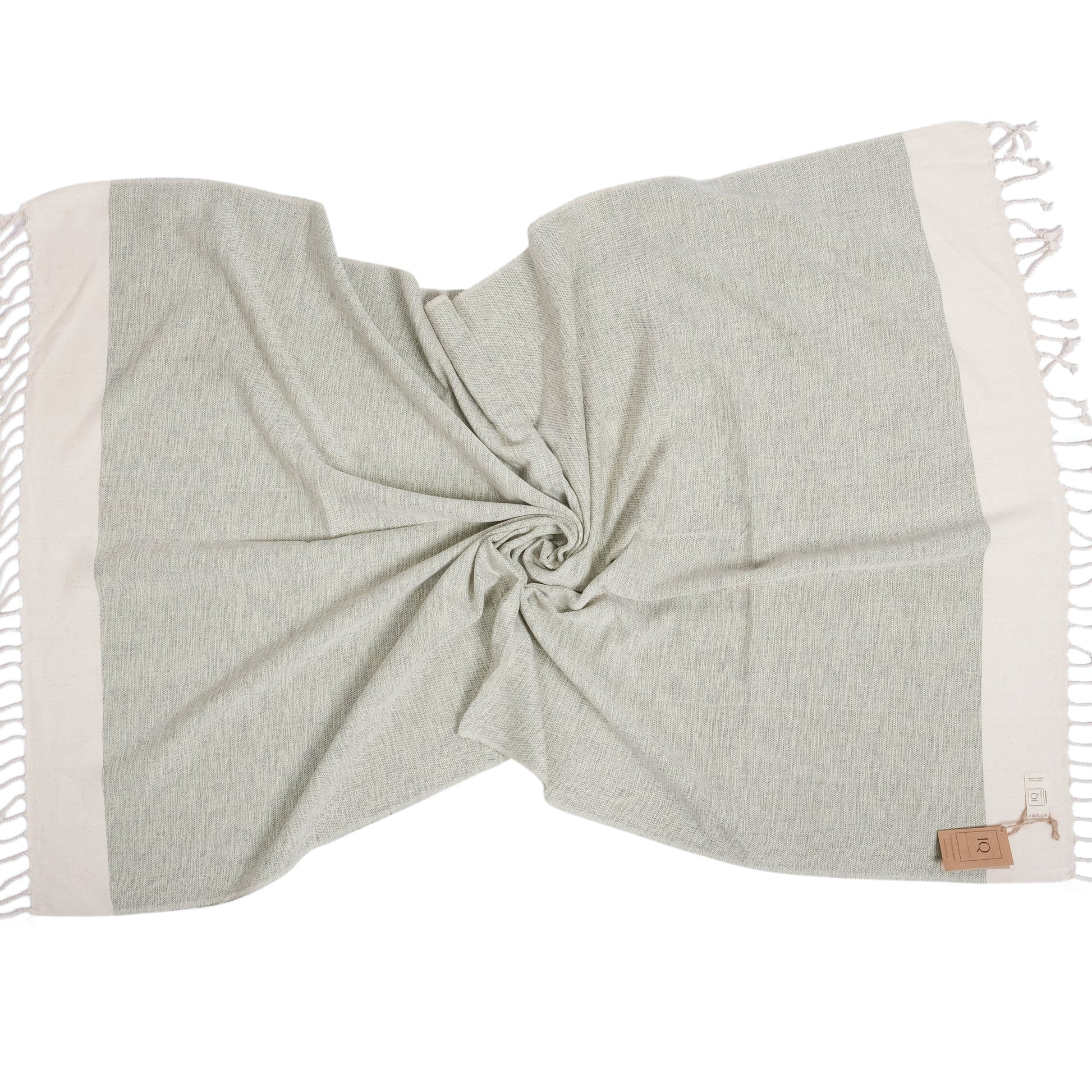 Das Tuch besteht aus 100 % Baumwolle, ist Oeko-TEX® zertifiziert und frei von Mikroplastik. Es ist leicht, saugfähig und schnelltrocknend – ideal für unterwegs. Die pastellgrüne Farbe und das elegante Design machen es zu einem stilvollen Begleiter für jede Gelegenheit.