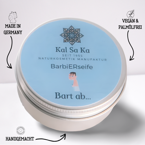 Die Naturrasierseife "Bart ab" von KAL SA KA ist wie gemacht für alle, die auch unterwegs Wert auf eine sanfte, nachhaltige Rasur legen. Die kompakte Dose passt in jedes Reisegepäck und schützt die Seife optimal.