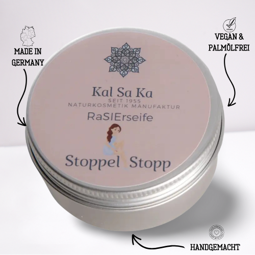 Die Naturrasierseife "Stoppel Stopp" von KAL SA KA ist speziell für Frauen entwickelt, die auch unterwegs nicht auf eine sanfte, gründliche Rasur verzichten wollen. Ob glatte Beine, Achseln oder Bikinizone – diese Seife sorgt für ein seidiges Hautgefühl und passt mit ihrer kompakten Dose in jedes Reisegepäck, jede Sporttasche und sogar ins Handgepäck.
