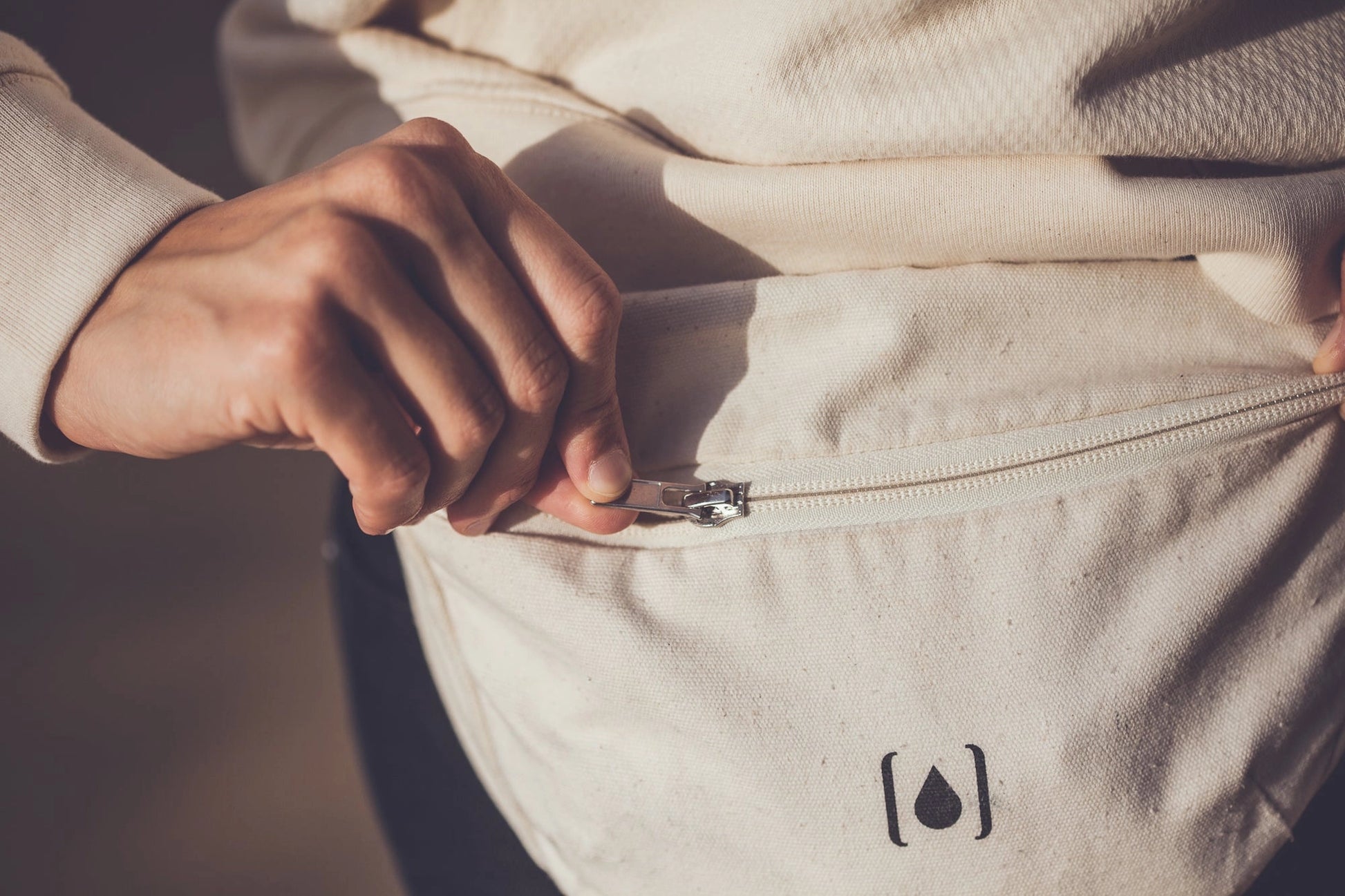 Ob am Strand, auf Reisen oder beim Festival: Diese Gürteltasche aus recyceltem Canvas ist dein stylischer Begleiter für alle Abenteuer. In Natur oder Schwarz, superleicht, fair produziert und mit genug Platz für alles Wichtige.