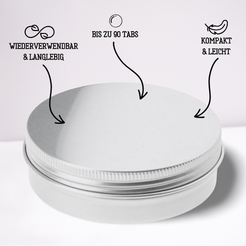 Mach deine Reisen nachhaltiger – bestelle jetzt die Aluminiumdose für Zahnpasta-Tabs und organisiere deine Pflegeprodukte stilvoll!